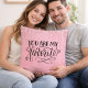Add a touch of romance to your home with this beautiful “You Are My Favorite” throw pillow featuring elegant hand-lettered typography with heart accents on a soft pink sparkle background.