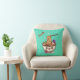 😍Super cute image of a cartoon style bowl of ramen accented with Japanese flora on a beautiful teal pillow.