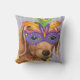 O filhote de cachorro liso bonito do Dachshund, vestido na máscara e na miçanga festivas da pena, apronta-se para o divertimento no carnaval ou em qualquer outro momento. Grande presente para o senhor mesmo e seus família e amigos Doxie-loving.