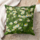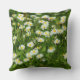 Uma travesseiro com uma foto seletivamente focada de um campo ou gramado com muitas margaridas.