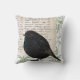 Travesseiro moderno do vintage com o animal do pássaro do pisco de peito vermelho e o manuscrito e cor damasco verde.
