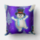 Este travesseiro decorativo de Natal azul giro irá certamente adicionar um toque colorido e festivo ao seu decoro de Natal este Natal. A design apresenta um boneco de neve balbuciano, dançante, com chapéu e cachecol listrado, cercado por árvores de Natal prateadas e neve sobre um bonito fundo azul. O outro lado apresenta um padrão menor de bonecos de neve por um pouco de variedade para que você possa sacudir-lo sempre que você se sinta como uma mudança.