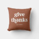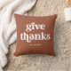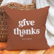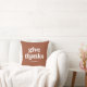 Este travesseiro simples e boho diz "dar obrigados" na tipografia retrorbranca sobre um fundo de terracota, e é a maneira perfeita de decorar sua casa para Ação de Graças.