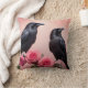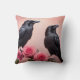 Ilustre um trabalho de arte digital cativante com dois corvos em uma ramificação, engajados em uma interação mesmerizante. O cenário cor-de-rosa empoeirado embelezado com rosas vívidas melhora o fascínio da cena, evocando uma mistura de mistério e beleza.