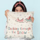 This Dashing Through the Snow pillow mixes playful holiday spirit with soft pastel charm — featuring a sweet sleigh, winter snowflakes, and cozy Christmas tones.