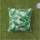 Esta almofada de acento exterior é mostrada com uma linda estampa de palmeiras tropicais.