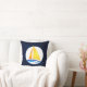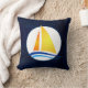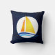 Esta almofada náutica apresenta um fundo de couro naval falso com um iate colorido moderno no centro. Uma almofada elegante para uma casa, escritório, casa de praia ou quarto de menino com tema náutico. Uma almofada decorativa como esta seria um presente atencioso para aquecimento da casa ou um presente para qualquer homem que ama iates.