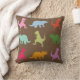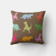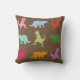 Silhuetas de dinossauros coloridos em uma almofada. Personalize a cor do fundo.