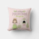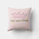 Almofada de lançamento de acento de menina bonita feita em um padrão listrado rosa e branco. Uma princesa de desenho animado fofa e seu treinador, com texto gráfico que diz Little Princess, na frente, e uma coroa, com texto gráfico que diz Eu desejo que eu fosse uma princesa, no verso. Nome em verde, na frente, está pronto para personalizar para sua pequena princesa especial.