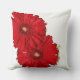 Duas urtigas vermelhas brilhantes colocadas sobre um fundo branco clássico criam uma almofada de sotaque que certamente adicionará pop e brilho a qualquer sala. Use-o em um pátio externo para entretenimento de verão.