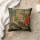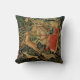 Uma almofada com design de tapeçaria vintage com uma cena de caça.