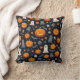 Esta é uma almofada de travesseiro para o Halloween. Tem uma abóbora de Halloween, design de fantasmas e morcegos.