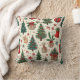Esta é uma travesseiro projetada com árvores de Natal e ornamentos.