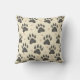 Esta é uma almofada de travesseiro em cores quentes e tem um padrão de impressão de pata de gato giro, grande e pequeno.