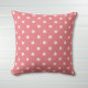Lindo e simples travesseiro rosa suave para decorar seu quarto favorito. Tem um padrão de bolinhas marrons em rosa suave sobre um fundo rosa mais escuro.