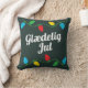 Um travesseiro de decoração de natal em língua dinamarquesa. Diz "Glæ delig Jul" para desejar um Feliz Natal.
