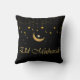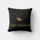 Recursos Luzes de Eid Ramadan e tipografia dourada Eid Mubarak em um fundo preto, belas decorações modernas de Ramadan e Eid para casa ou festa. Decoração de almofada Eid por Arabix.