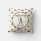 Esta almofada com monograma é uma ótima maneira de criar um souvenir memorável para um casal especial. Um padrão de estrelas douradas aparece contra um fundo branco. Seu monograma é apresentado em um círculo central em uma cor amarelo dourado, juntamente com o nome da família e o ano de casamento. Personalize facilmente as cores e a inicial do monograma para atender ao seu desejo.