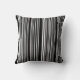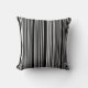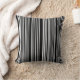 Esta almofada de lançamento é mostrada em uma estampa de listras pretas e brancas.