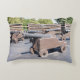 This photo captures the sight of a collection of old cannons sitting on display atop a wooden fort.