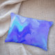 Há uma explosão de cores azuis e lavandas neste travesseiro único, que certamente iluminará qualquer decor! As cores ousadas parecem ter sido aplicadas para criar uma obra de arte brilhante e colorida.