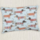 Enchidos bonitos de Dachshund ou cachorros-salsicha em tricô-branco sobre fundo azul-claro. Perfeito para amantes de cachorros e ambulantes de cães. Arte original de Nic Squirrell.