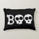 O plano de fundo apresenta uma cor sólida preta personalizável... você pode mudar isso. Travesseiro de sotaque do Halloween para seu decor de outubro. Estilo Grunge boney B e crânios "BOO!" tipografia.