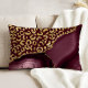 An elegant pattern of gold faux glitter leopard spots on a burgundy red background combines with burgundy agate trimmed with faux gold glitter in this luxurious accent pillow.