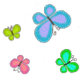 Fun multicolor folk art style butterflies fly over this sweet blue and white stripe background.