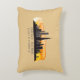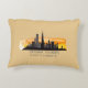 O travesseiro decorativo de ênfase na moda retangular apresenta a silhueta do horizonte da cidade de Chicago Illinois com abertura de cor d'água e coordenadas do mapa de latitude e longitude