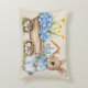 Apresentando nosso coelho personalizado com travesseiro de Flores Azuis! Com um pequeno coelho segurando flores silvestres azuis, um carrinho de madeira com muitas flores silvestres azuis e uma pequena casa nas costas, este travesseiro traz encanto e brincadeira a qualquer quarto!