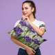 Decorre seu espaço com este travesseiro de sotaque que mostra a foto de um jardim de flores violetas profundas de Íris. Um design floral adorável! Selecione o estilo do tecido do travesseiro.