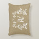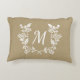 Travesseiro de destaque com coroa floral branca e monograma personalizado sobre fundo bege em relevo.