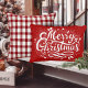 Celebre as férias com este travesseiro vermelho e branco festivo que deseja a todos um "Feliz Natal" em um roteiro divertido, mas clássico, com florescimento sazonal de na moda.