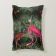 Dois flamingos cor-de-rosa no fundo das folhas da monstera. Muito retrortropical.