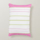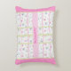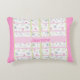 Flores coloridas, cor-de-rosa e azuis, acentuadas com listras. travesseiro de excelente para decorar um quarto de meninas.