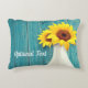 Girassóis plantados sobre uma prancha de madeira rusticada, pintada em azul-de-vidro marinho. Personalize para seu gosto!