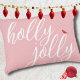 Holly Jolly Christmas White Na moda Script Accent Travesseiro Simples, na moda, travesseiro rosa sólido com "holly jolly" em uma fonte branca, com um pequeno pássaro vermelho para um pop de chorona.