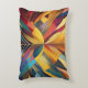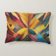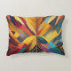 Um conjunto vibrante de formas ousadas e geométricas converge no centro, formando uma composição simétrica e colorida. A peça usa uma variedade de matizes, que vão de amarelos quentes e laranjas a legal blues e roxas.