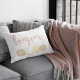 Bonjour! Empreste um pouco de talo parisiense ao seu sofá, cama ou cadeira favorita com este travesseiro de sotaque em tres. Design apresenta quatro macarões franceses elegantes em tons pastéis de rosa, marfim, amarelo e bronzeado, com "Bonjour" no texto de guião branco, escrito à mão. Use o campo personalização opcional para adicionar um nome, monograma ou texto de sua escolha à parte traseira do travesseiro.