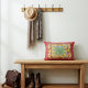 Um travesseiro de sotaque com padrão abstrato do artista checo Alphonse Mucha (1860-1939) do período Art Nouveau, com várias folhas coloridas nas cores do outono de cor vermelha e laranja.