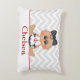 Para um olhar náutico, este travesseiro de sotaque bonitinho apresenta uma menina vestida para um dia na praia com pequena âncora vermelha e arco bolinhas em seu cabelo. O plano de fundo contrastante é um padrão de faixas de divisa de cinza clara para estilo adicionado. Personalize este item editando o nome do exemplo com o nome do seu filho. O adorável desenho animado é cortesia de Kristi W. Designs.