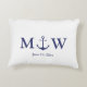 Travesseiro náutico de âncora marinho azul e monograma branco design Ênfase Texto elegante minimalista personalizável Checar o resto da coleção para favores, etiquetas de presente, adesivos, selos, etiquetas, suprimentos de festas, sacos de presente, caixas de presente, cartões, etc excelente para praia oceânica estilo litoral Casamentos