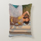 Almofada Decorativa Mulher de biquíni amarelo em pé no flo castanho