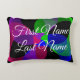 Crie um presente humorístico para si mesmo ou para um amigo com este nome mude o travesseiro de sotaque geométrico. Este produto apresenta a personalização do texto do lado frontal, do primeiro e do sobrenome. Do outro lado do travesseiro, mude as primeiras letras da sua frente e sobrenomes para criar um novo nome interessante que você pode mostrar aos amigos. Aproveite um presente colorido que apresenta um tema circular de fusão multigeométrica. Compre os travesseiros de lançamento e redondo para completar o conjunto.