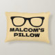 Personalized accent pillow with black spectacles. Add custom text. Fun Birthday gift idea for him or her. Custom colors.