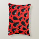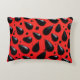 Um fundo vermelho vibrante é coberto com gotículas pretas brilhantes de tamanhos variados, que se assemelham a lágrimas e pequenas esferas, criando um contraste visual impressionante entre as duas cores.