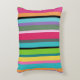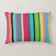 Listras vibrantes em tons de rosa, vermelho, amarelo, verde, roxo, preto, laranja, turquesa, e mais adornam este travesseiro de sotaque.
