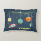 Um travesseiro com os brinquedos temáticos de uma ucha do espaço do pacifier da lua, do navio do foguete, da terra, do planeta e do bebê. Aperfeiçoe para uma aventura do espaço para o pouco um. Grande parte decorativa para o berçário do bebé.