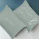 Travesseiro de sotaque totalmente personalizável, personalizado com os nomes dos casais e a data de aniversário em uma cor verde macia. Presente ideal para dias de os namorados, aniversário, aniversário e Natal. Também faria um presente perfeito para o casamento.